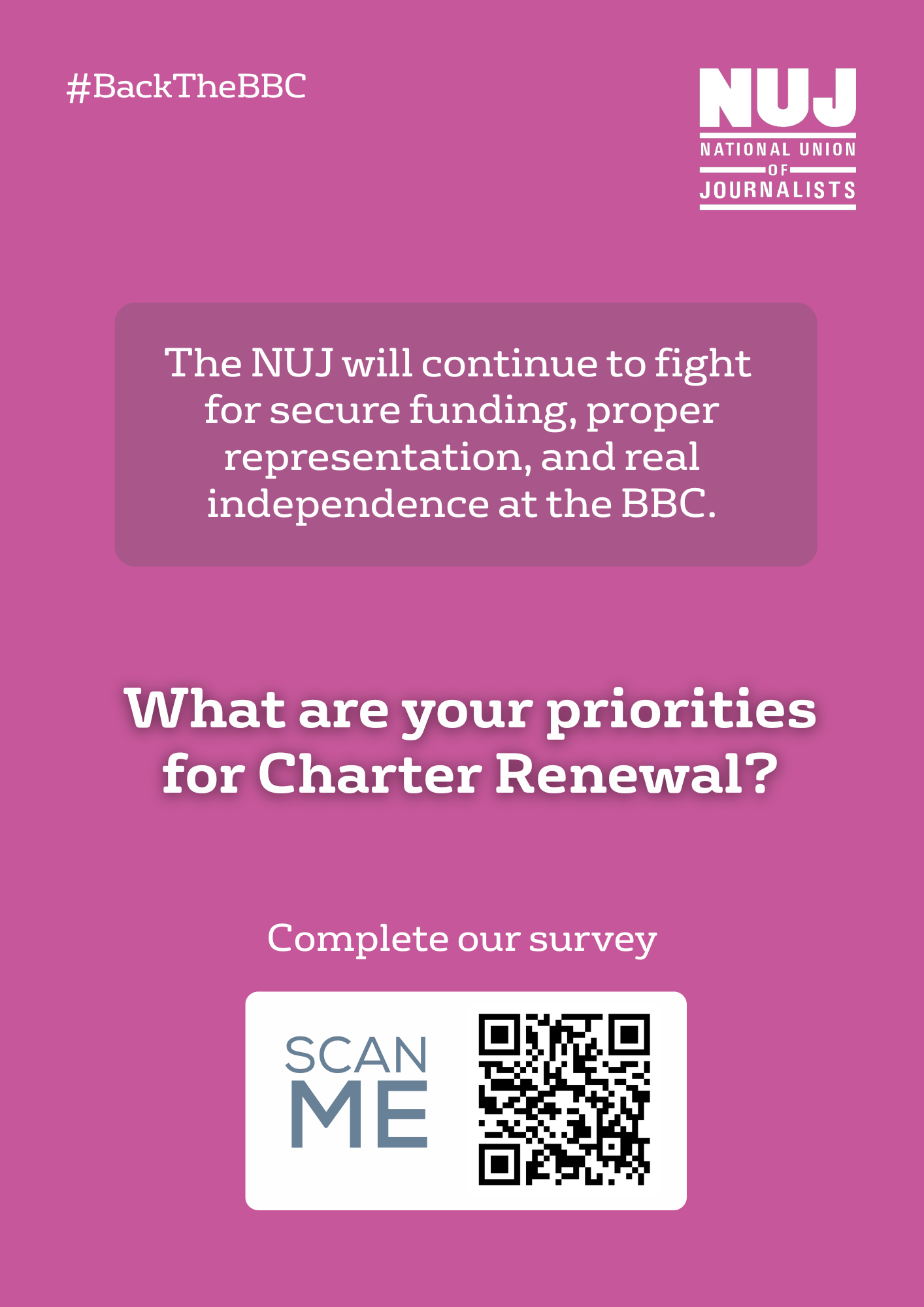 Download and print our BBC Charter Renewal poster to share our survey and campaigning calls with colleagues and within your workplace.