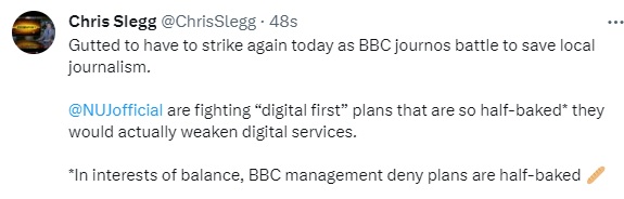 Send your messages of support using the hashtag #NUJBBCStrike and tag @NUJofficial.